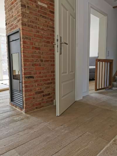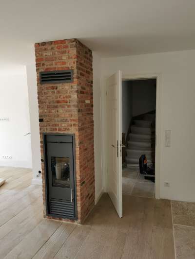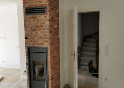 Hier wurde ein Schiedel Kingfire-Kamin mit unseren Riemchen „Westerhever“ verkleidet. Die Kombination aus moderner, klimafreundlicher Kamintechnik und der authentischen Optik historischer Ziegel schafft ein Ergebnis, das sich harmonisch in die Umgebung einfügt und den Raum um einen besonderen Akzent bereichert.