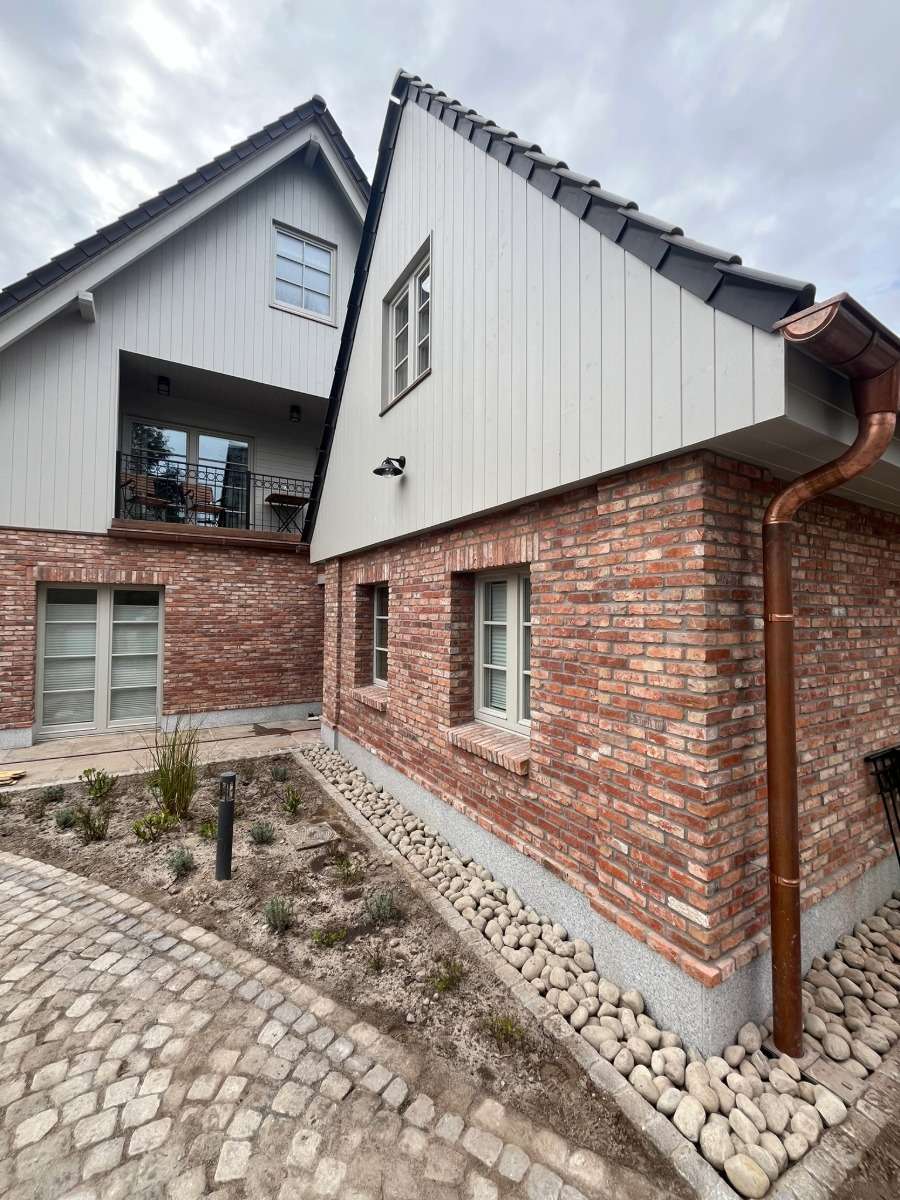 Riemchen auf einem Wärmedämmverbundsystem sind eine hochwertige Alternative zum klassischen Putz. Sie verbinden die Vorteile moderner Fassadendämmung mit der robusten Optik und Haptik von echtem Ziegel. Im Gegensatz zu Putz sind Riemchen deutlich widerstandsfähiger gegen Stoßbelastungen und wirken langlebiger sowie wertiger. Durch das Verkleben und anschließende Verfugen entsteht eine Fassade, die nicht nur authentisch aussieht, sondern auch dauerhaft geschützt ist.