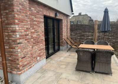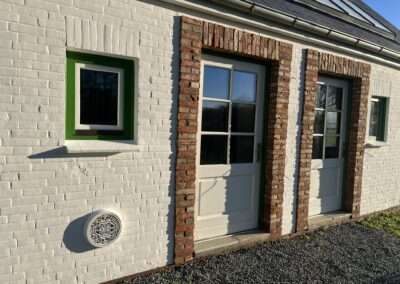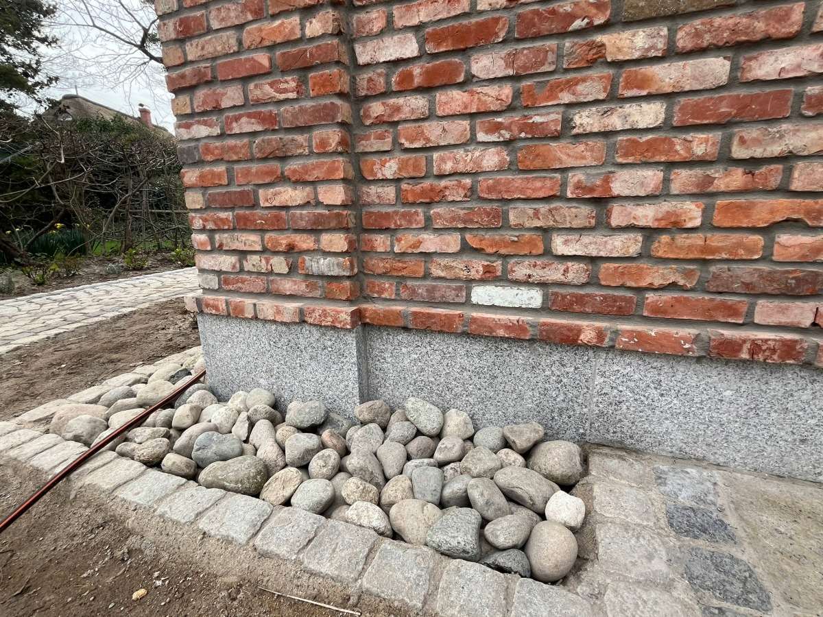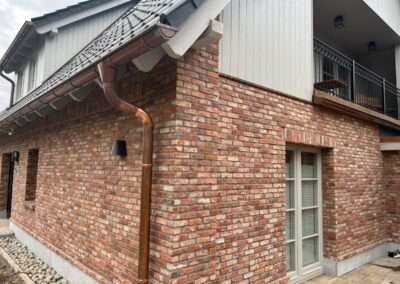 Riemchen sind eine sehr gute Möglichkeit, um Flächen, an denen ein Vollstein zu viel Platz einnimmt, zu verkleiden. Beispiele sind z. B. WDVS-Systeme zur Fassadendämmung oder Wandverkleidungen im Trockenbau. Wir schneiden in unserer Manufaktur in Garding Riemchen aus originalen ReUse-Ziegeln. Ein Unterschied zu einem Vollstein ist nach der Verfugung nicht zu erkennen.